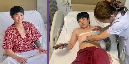 La durée de l'opération n'a pas été trop longue, mais mon cas a été assez difficile car les chirurgiens ont d'abord dû enlever le silicone. Après l'opération, j'ai été emmené en salle de réveil pour surveiller mes symptômes. J'ai été amené dans ma chambre vers 5 heures du matin, presque 6 heures du matin le lendemain. Quant à la douleur, ça ne faisait pas mal du tout, c'était juste un peu serré parce qu'il y avait un tissu autour de ma poitrine. J'ai pu me lever et aller aux toilettes normalement, me brosser les dents et lever les bras, mais pas trop haut.