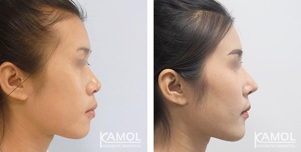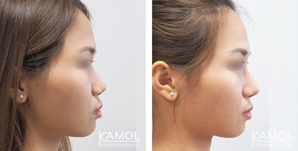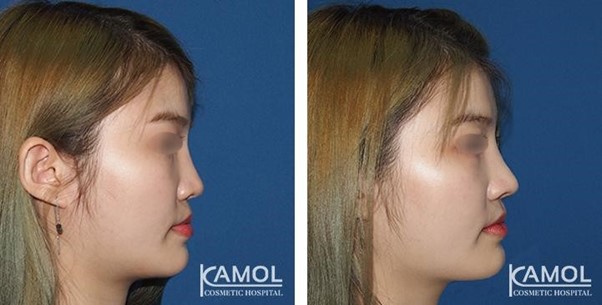 - Avant l'augmentation : Il y avait un problème avec un nez court et plat, un pont cassé et une pointe étirée.