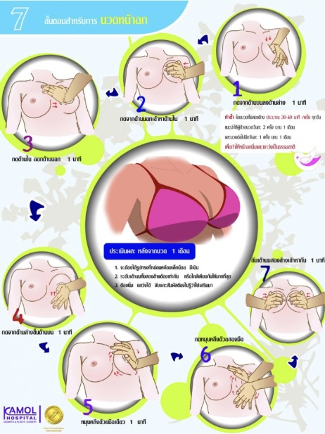 4 - Gently cup your breasts in your hands and use a circular motion to massage the breasts, starting at the outside and moving inward.