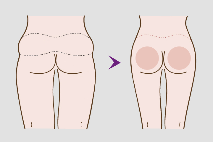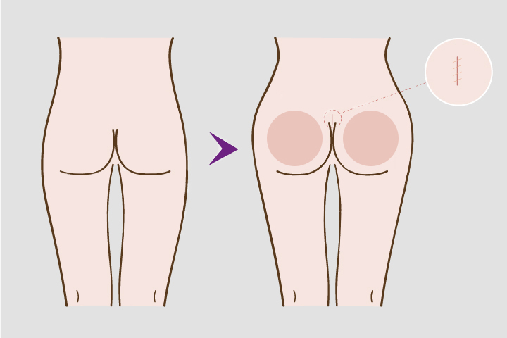 - Eles fazem incisões onde fica a dobra da nádega. É criada uma bolsa sob o músculo das nádegas, onde o médico molda o implante ao corpo da paciente ou insere o tecido adiposo