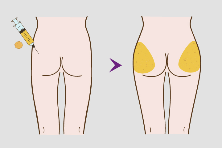 Esteja ciente de que se um cirurgião sugerir que silicone ou outros materiais sejam injetados nas nádegas, isso não é seguro e é ilegal. Essa técnica é perigosa para pessoas que são injetadas com aparelhos ou produtos não esterilizados. As substâncias injetadas podem se deslocar para outras áreas do corpo e se transformar em granulomas duros ou causar necrose da pele. Isso pode ser uma complicação com risco de vida, pois, no pior dos casos, os materiais injetados nos vasos sanguíneos, como o êmbolo, se deslocarão para o coração e os pulmões, o que pode causar a morte.