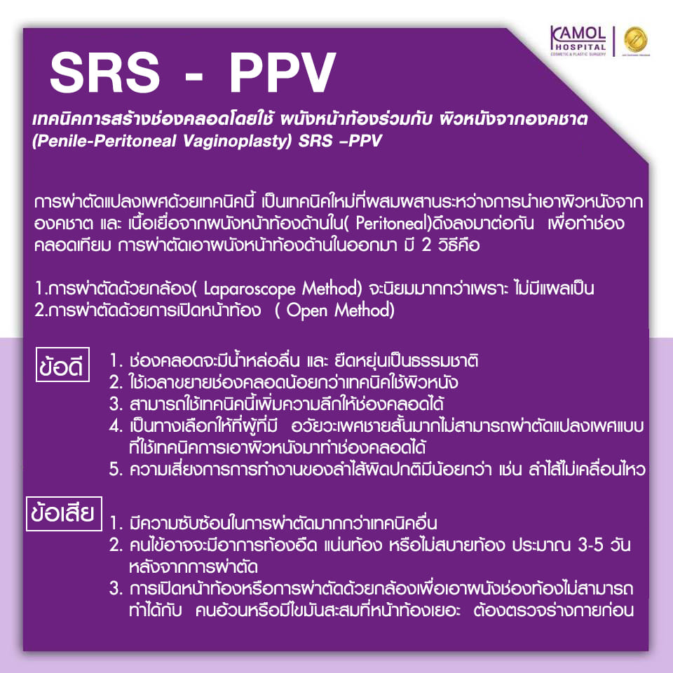 3. การนำผิวหนังจากบริเวณอวัยวะเพศชายเดิมหรือจากถุงอัณฑะไปสร้างเป็นผนังช่องคลอดจะได้ช่องคลอดใหม่เหมือนผู้หญิง