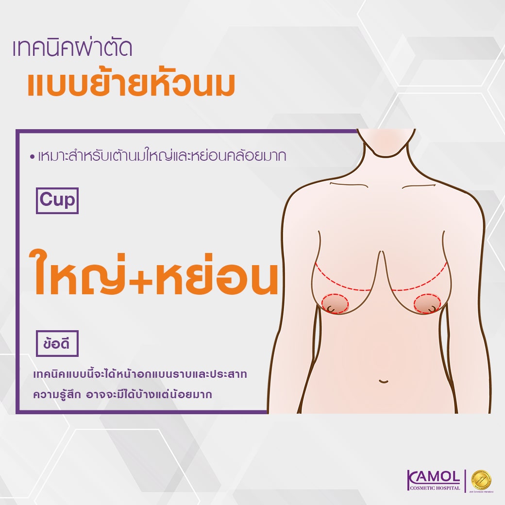 4. ปรึกษาศัลยแพทย์ก่อนผ่าตัด ตรวจขนาดและความหย่อนคล้อยของหน้าอก ความยืดหยุ่นของผิว ขนาดของหัวนมและปานนม เพื่อเลือกเทคนิคการผ่าตัดที่เหมาะสม