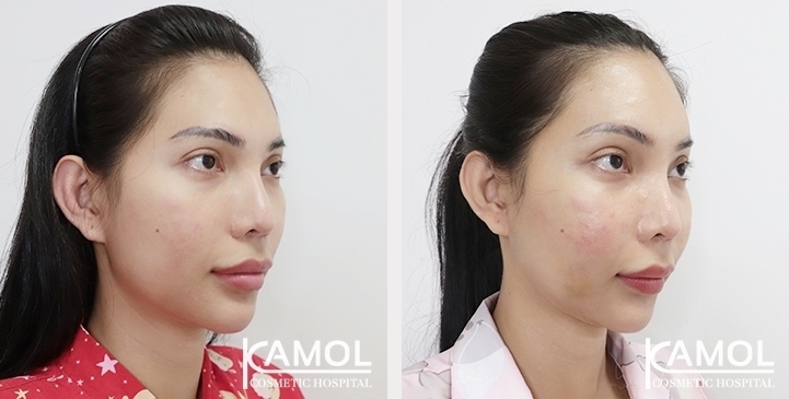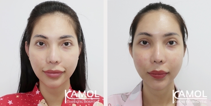 รูปก่อนและหลังผ่าตัดเสริมโหนกแก้ม ที่โรงพยาบาลศัลยกรรมตกแต่งกมล
